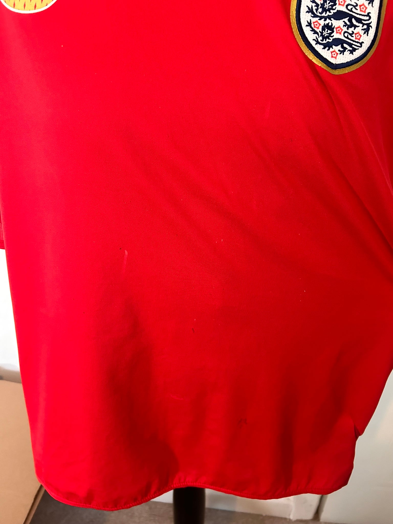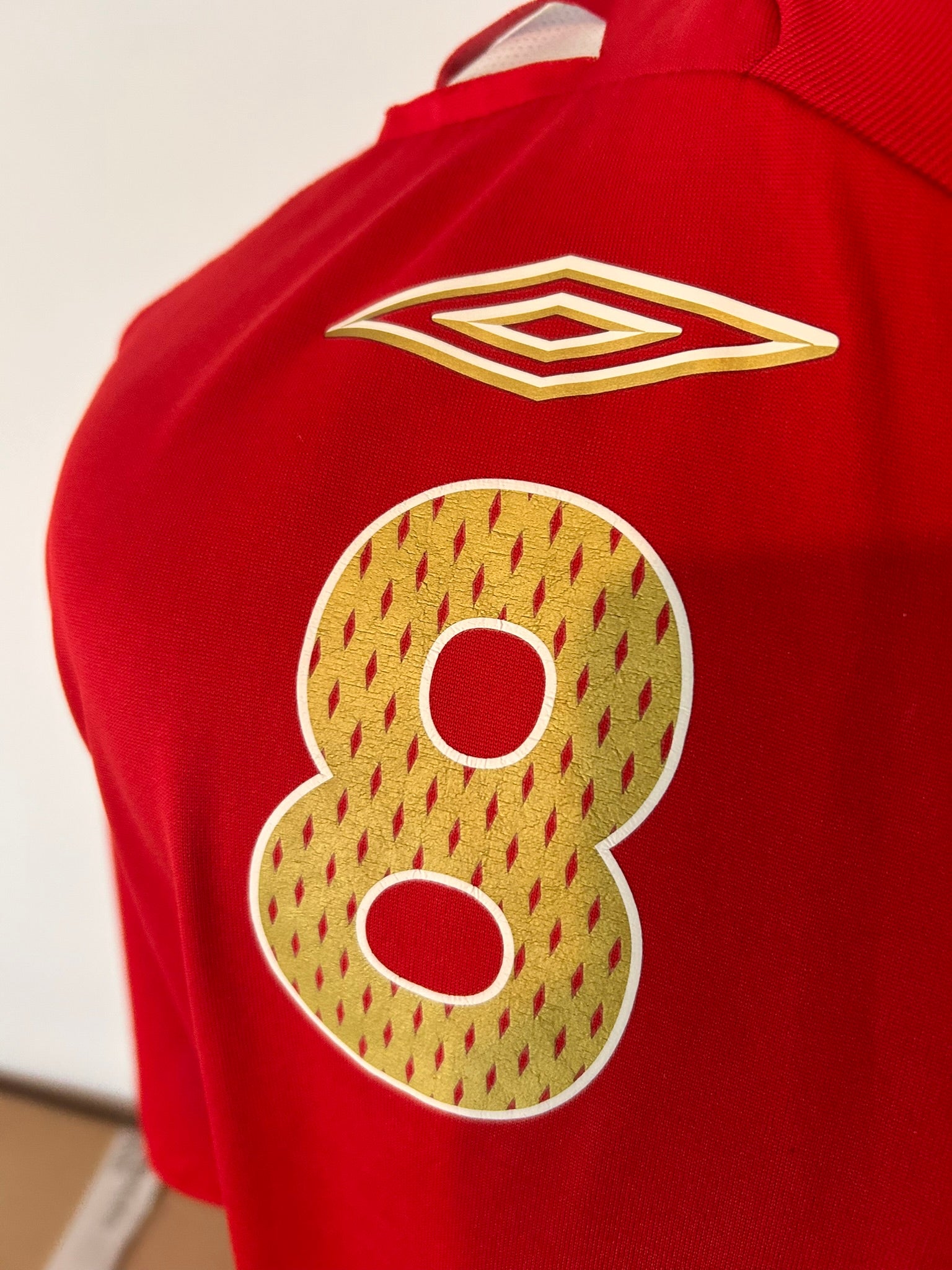 This standout shirt recalls Lampard’s influential role during the mid-2000s, including the 2006 World Cup campaign. Designed in the striking all-red away style, it features subtle gold trim, the embroidered Three Lions crest, and Umbro’s signature diamond detailing. Crafted with lightweight, breathable fabric, it delivers comfort whether worn casually or kept as part of a collection. A must-have for enthusiasts of classic football shirts, it represents both England’s proud heritage and Lampard’s midfield mastery. Perfect for collectors seeking vintage football shirts tied to one of England’s most dependable and iconic players.