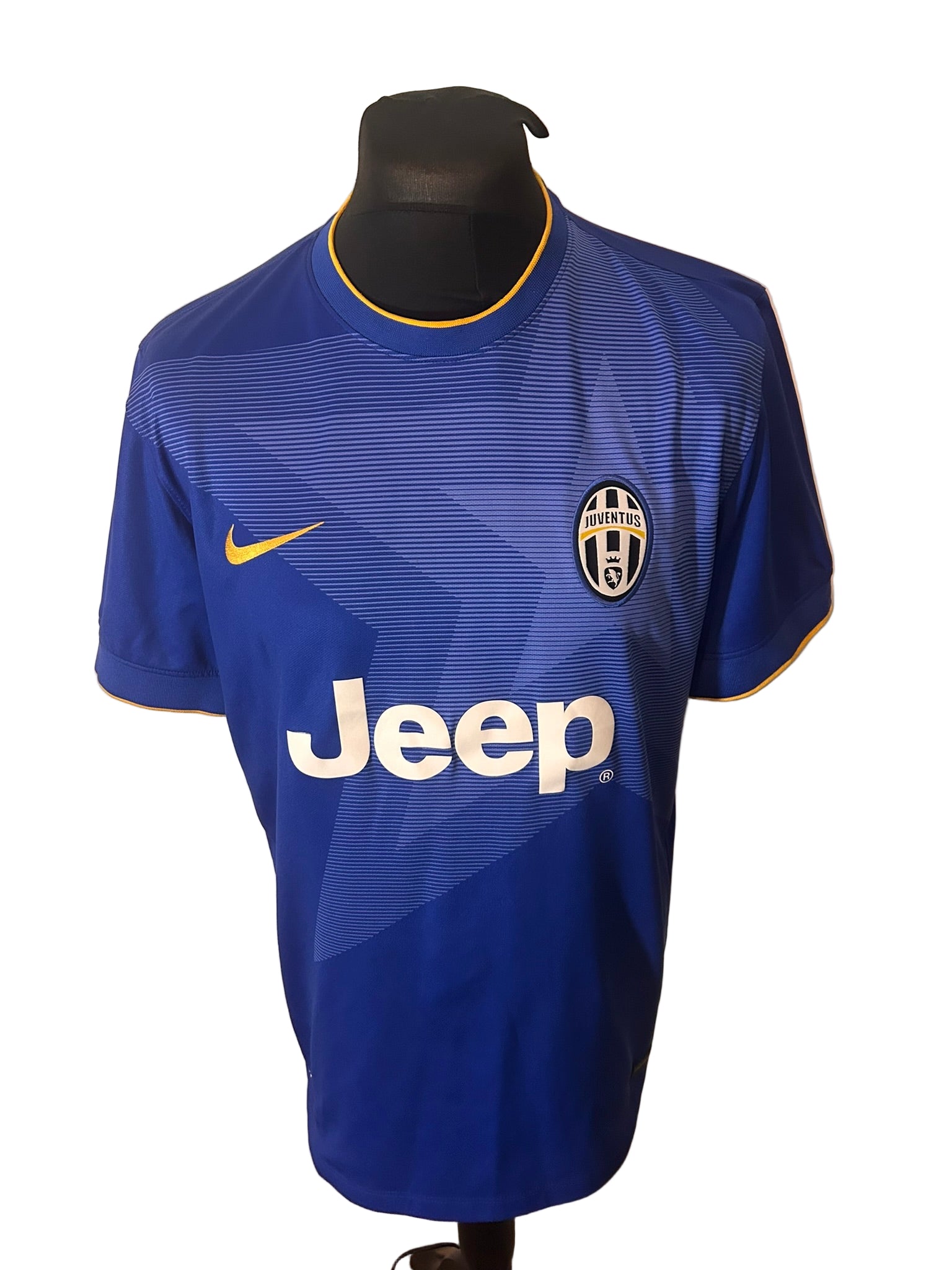 This striking design pays tribute to Juventus’ dominance during the 2014-15 season, where the club secured another Serie A title and reached the Champions League final. The shirt features a bold royal blue base with yellow accents, embroidered club crest, and Nike swoosh, combining modern performance technology with timeless style. Crafted in lightweight, breathable fabric, it ensures comfort whether worn casually or on the pitch. A must-have for fans and collectors of classic football shirts, this large-sized jersey embodies the pride and heritage of Juventus, making it an essential addition to vintage football shirts collections.