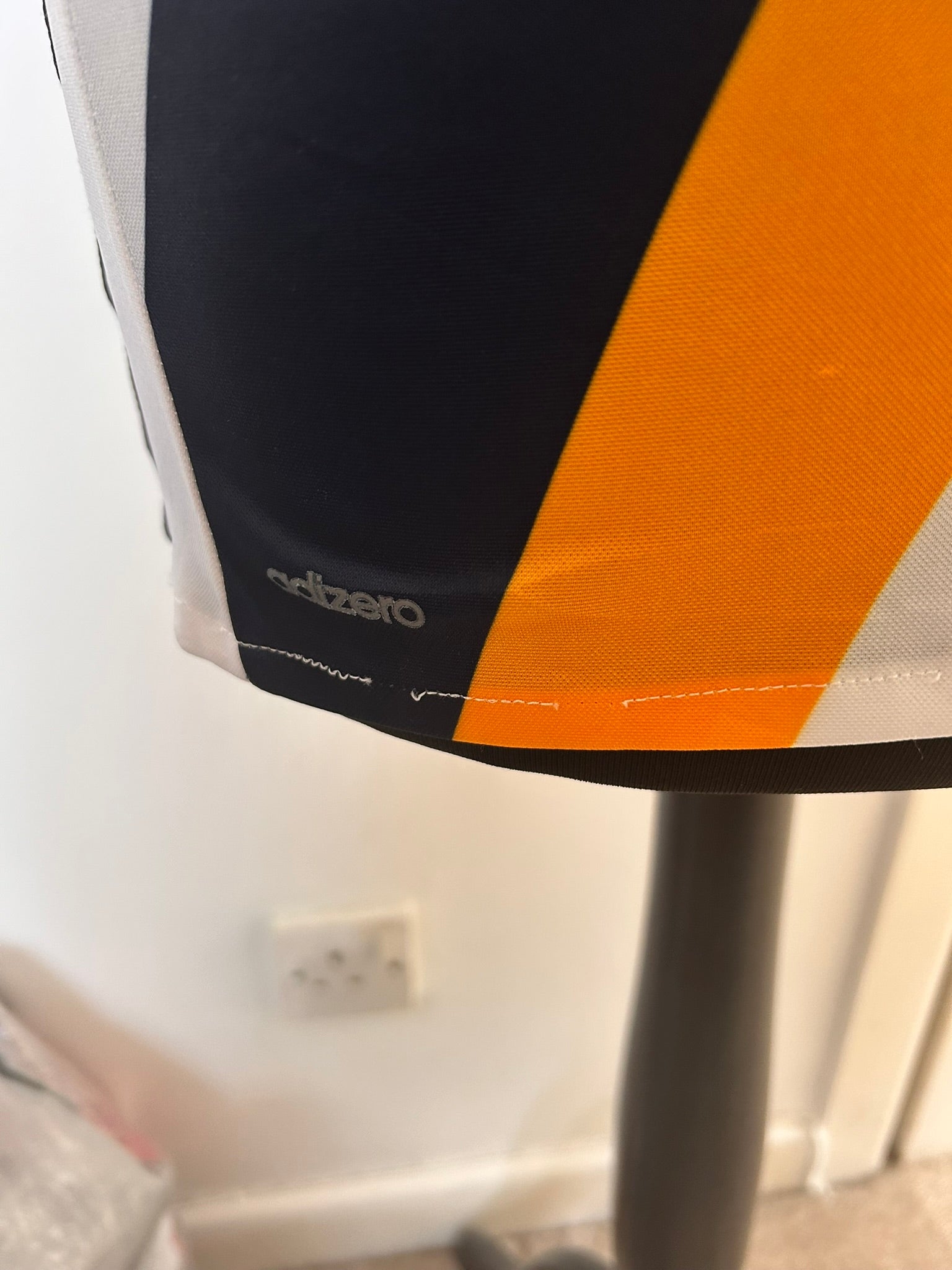 This authentic player-spec jersey represents the MLS giants during a period featuring stars like Steven Gerrard and Robbie Keane. Designed in crisp white with a bold navy and gold sash across the front and the club crest, it reflects Adidas’ sleek modern styling. Unlike standard replicas, the player issue version features advanced lightweight fabric and athletic fit for elite performance. A prized addition for collectors of vintage football shirts, this small-sized shirt is also perfect for fans seeking classic football shirts tied to the heritage of the LA Galaxy.