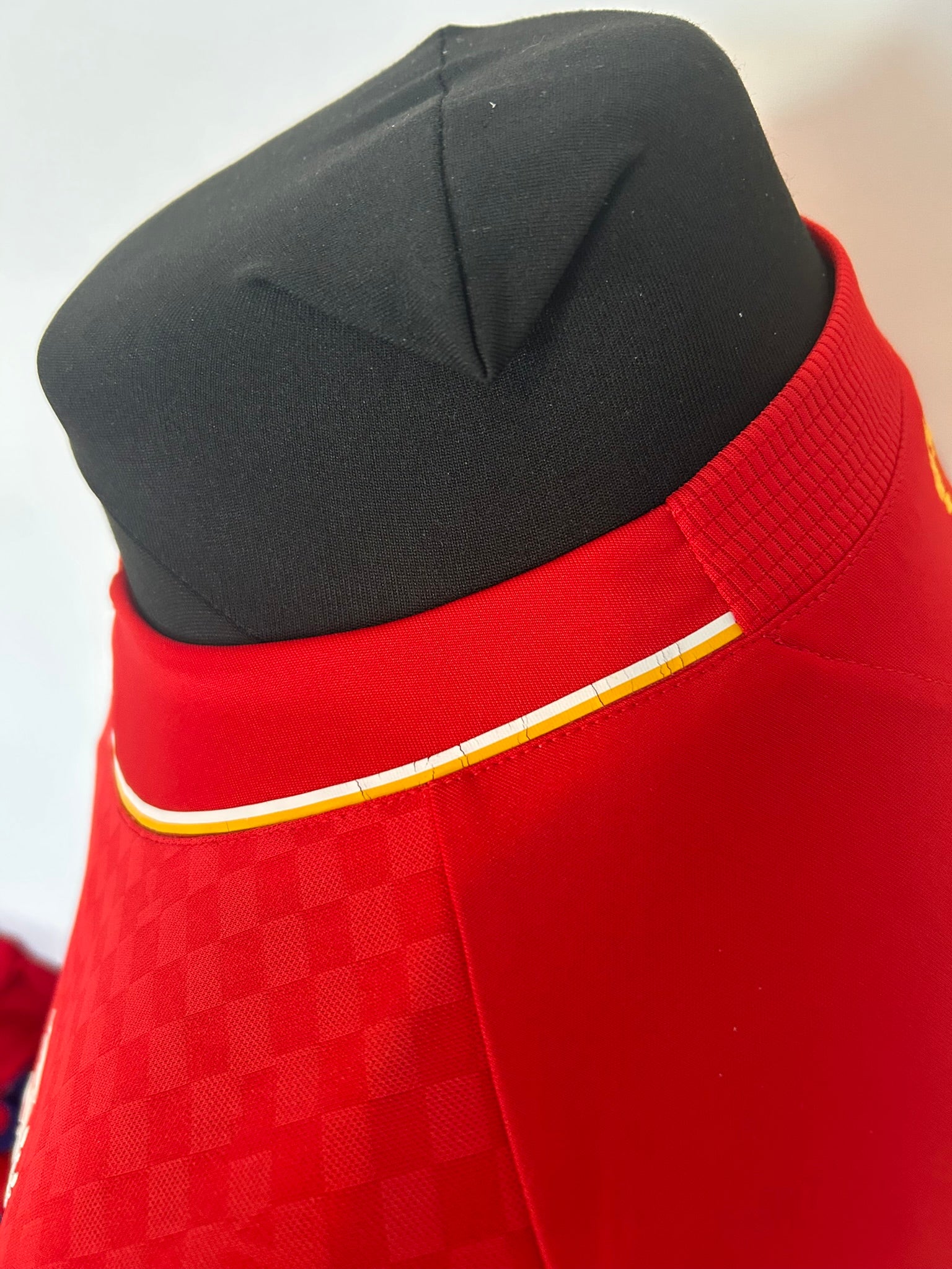 This striking piece represents Firmino’s first season at Liverpool, featuring his name and number 11 on the reverse as he began establishing himself as a central figure at Anfield. Designed in the club’s traditional red with distinctive checkered and striped detailing throughout the body, it is finished with a heat-applied L.F.C. crest and Standard Chartered sponsor on the chest. Produced by New Balance, the shirt uses lightweight, breathable fabric engineered for comfort and performance. A classic football shirt that captures the start of a transformative era for both player and club, this medium-sized jersey is a strong example of mid-2010s Liverpool design with clear player heritage.
