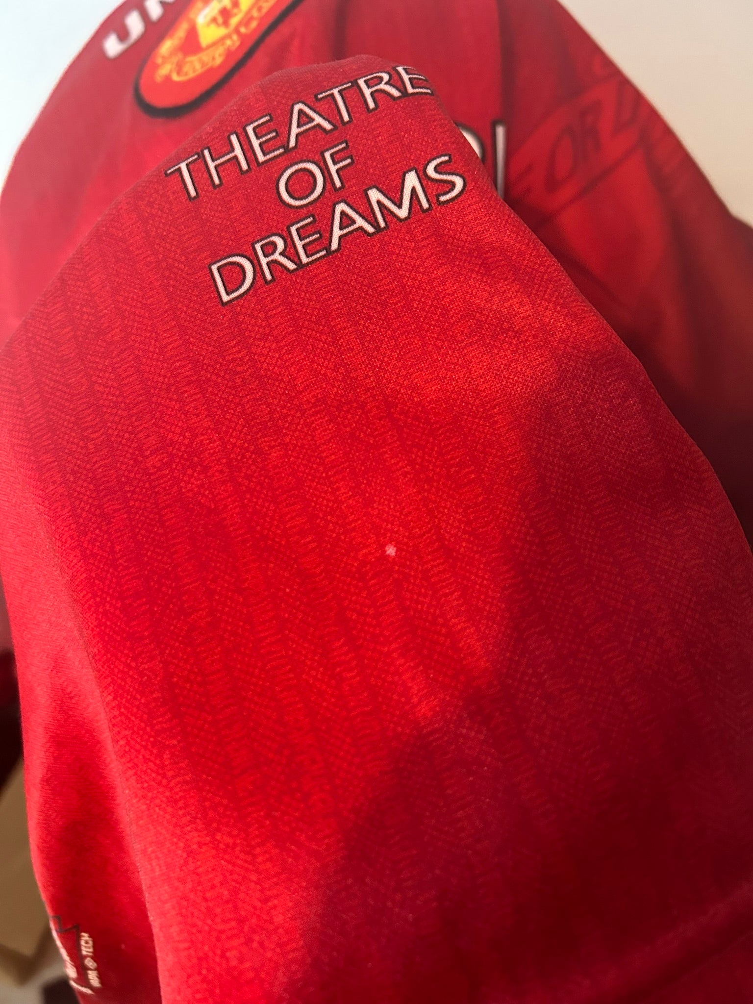 This iconic piece represents Cantona’s final seasons at Old Trafford, a period defined by authority, flair, and domestic dominance. Featuring the classic red body with a fold-over collar, subtle tonal patterning, Sharp sponsor, and embroidered club crest, it reflects the bold design language of the late 1990s. Crafted by Umbro using lightweight, breathable fabric, it offers comfort while preserving authentic match-era styling. Ideal for collectors of vintage football shirts, this XL jersey stands as a timeless tribute to one of Manchester United’s most influential figures.