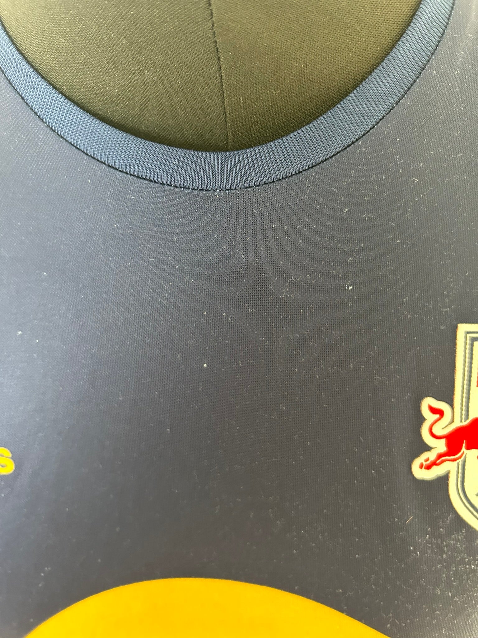This rare player issue version showcases the bold navy design with vibrant yellow trim, worn during the MLS campaigns of 2014-15. Featuring the iconic Red Bull logo across the chest and heat-applied crest, it embodies the club’s modern identity. Crafted by Adidas with advanced player issue technology, it offers lightweight, breathable fabric and a slim performance fit. A standout piece for collectors of classic football shirts, this large-sized jersey highlights the energy and flair of the New York Red Bulls. A must-have for fans of vintage football shirts.